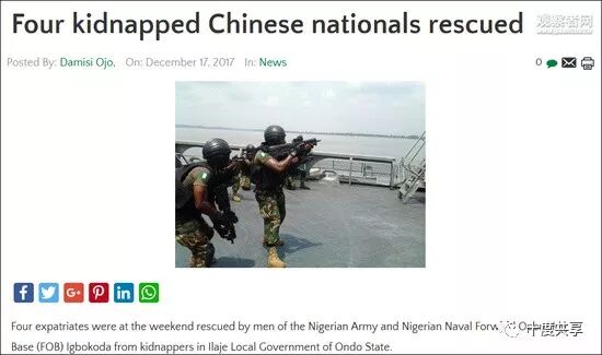福克斯新闻则称,尼日利亚军方之所以前去解救中国公民是因为接到了一个求救电话。